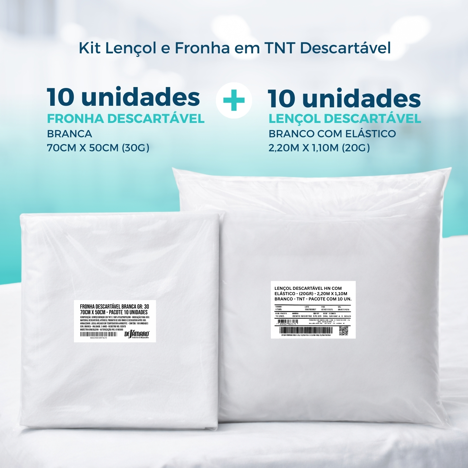 - Conteúdo do kit: 10 lençóis descartáveis com elástico e 10 fronhas descartáveis