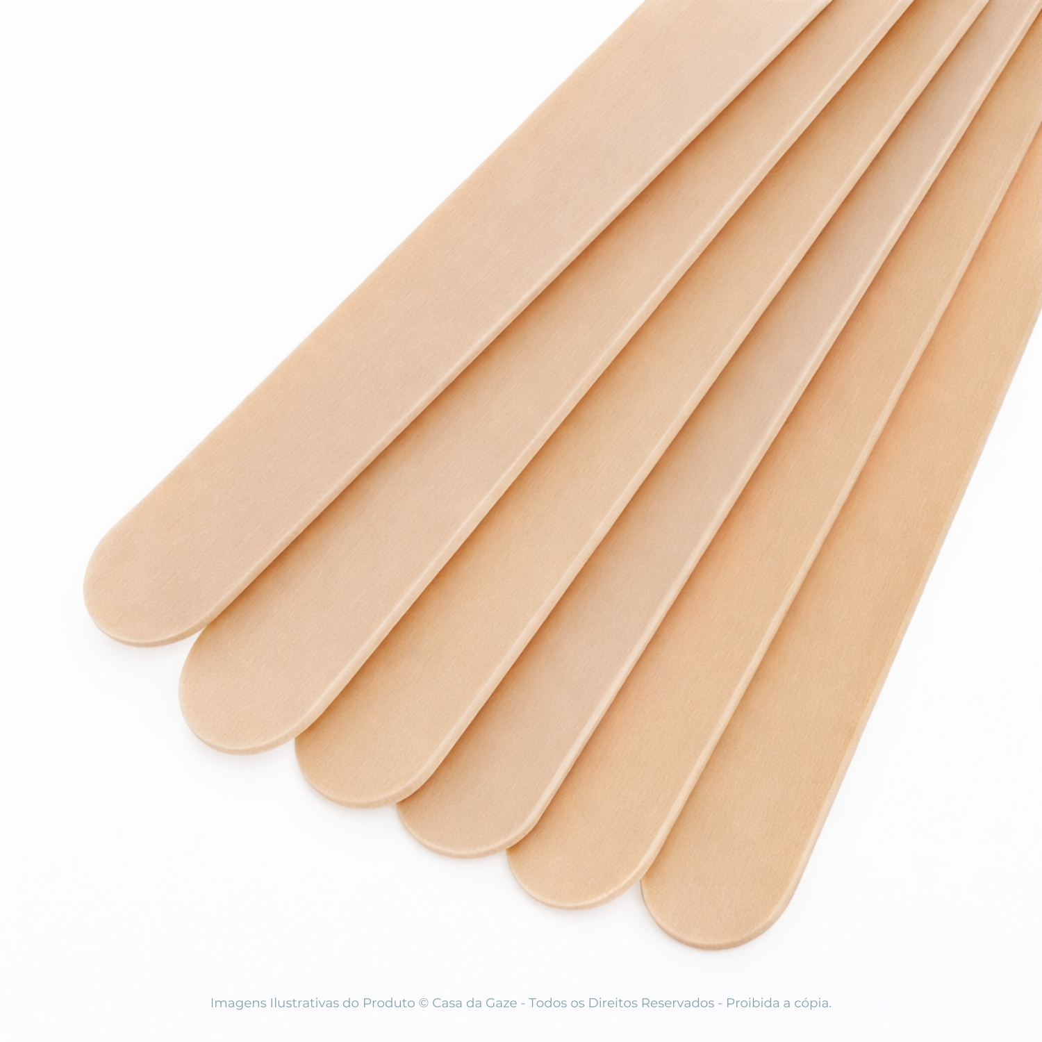 5. O material é resistente para cera de depilação? Sim, a madeira é firme e suporta a aplicação de ceras quentes ou frias sem quebrar.